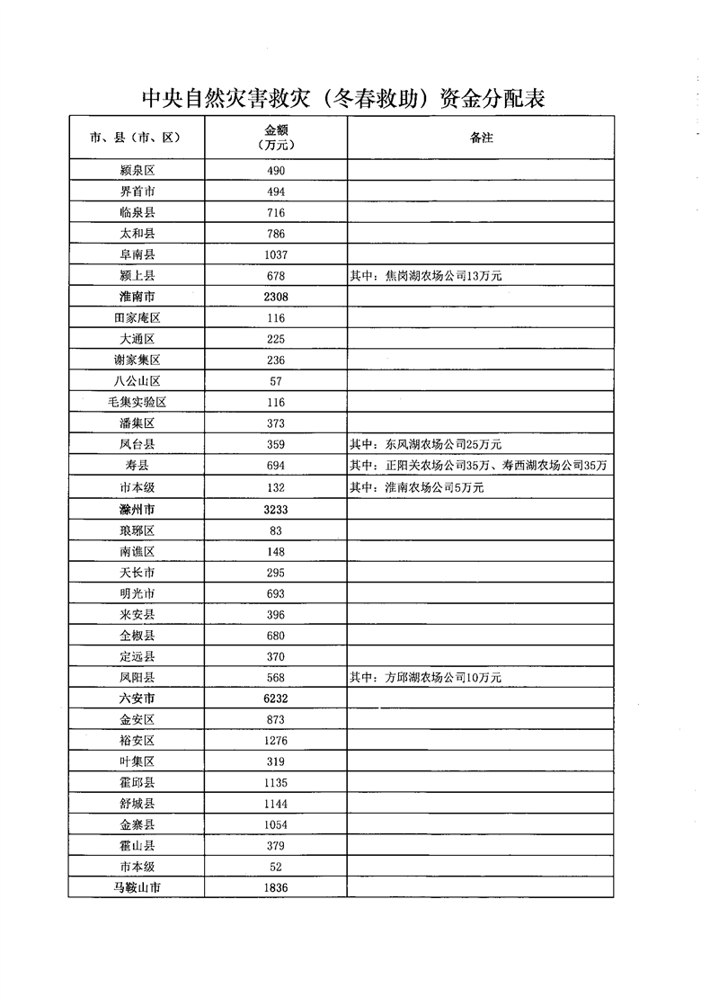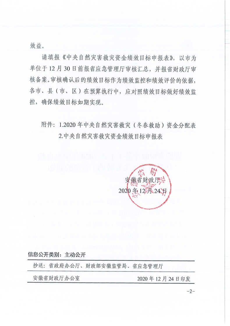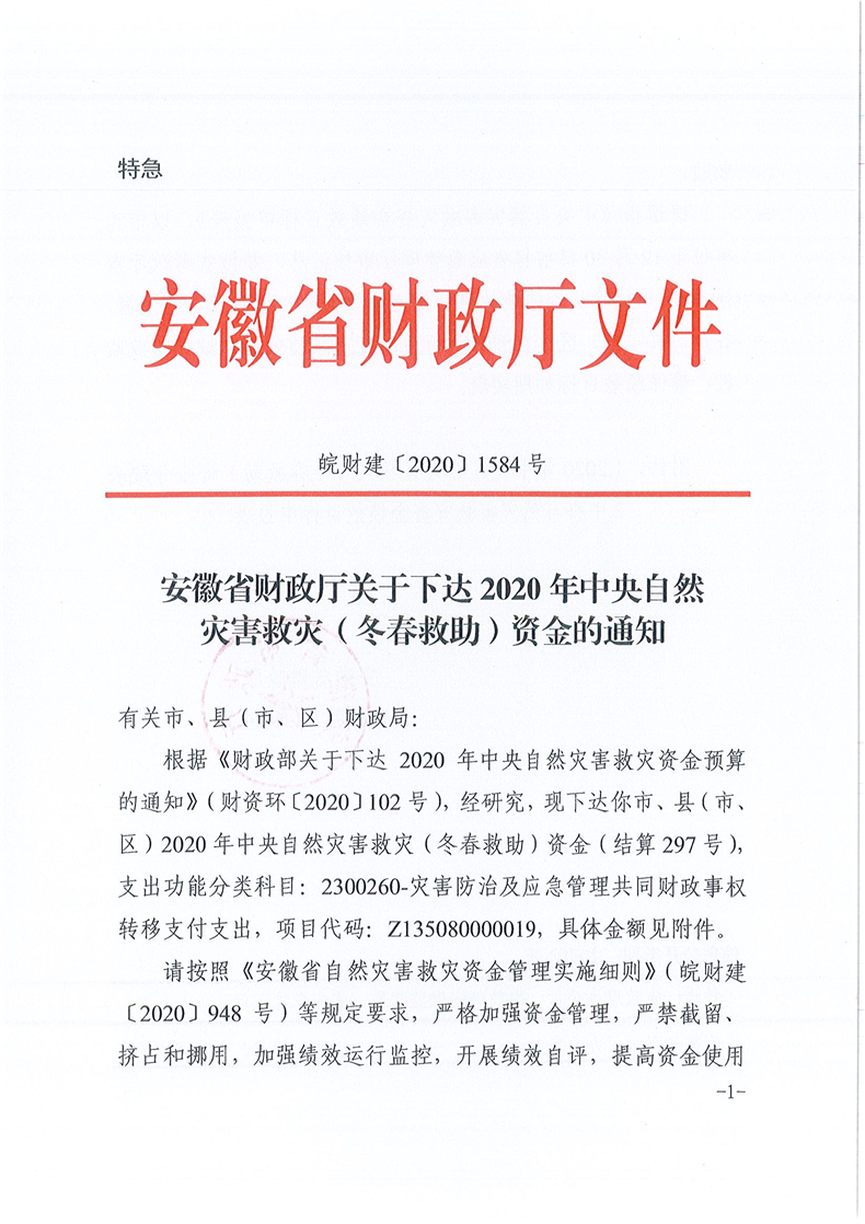 【政策文件】安徽省财政厅关于下达2020年中央自然灾害救灾(冬春救助)资金的通知