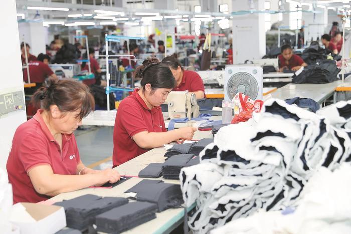 7月17日,相山区渠沟镇钟楼村的新亿鑫服装厂内,200多名本地工人正忙碌地赶制一批服装订单。