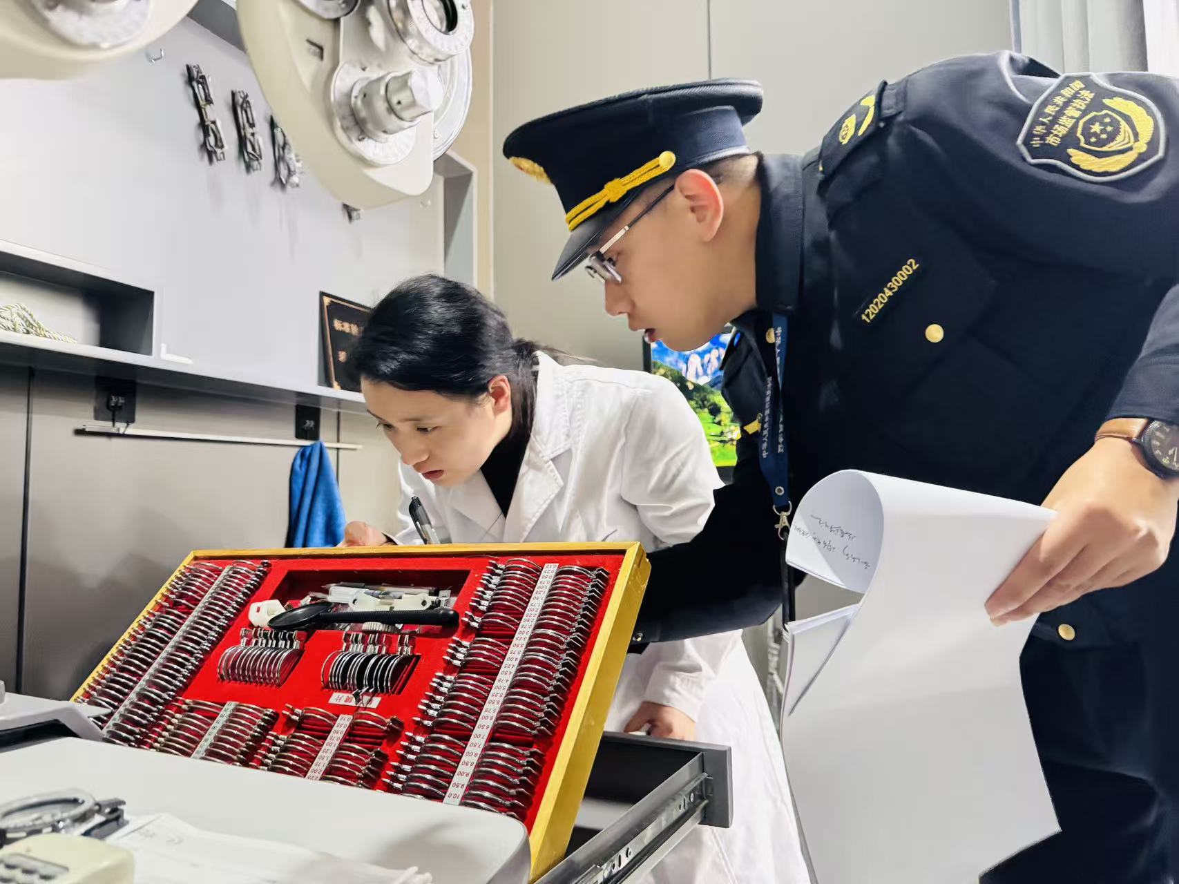 此次检查聚焦眼镜店内的焦度计、验光仪等强制检定计量器具。执法人员严格按照相关标准和规范,仔细查看设备的检定证书,确认其是否在有效期内,是否存在超期未检的情况。