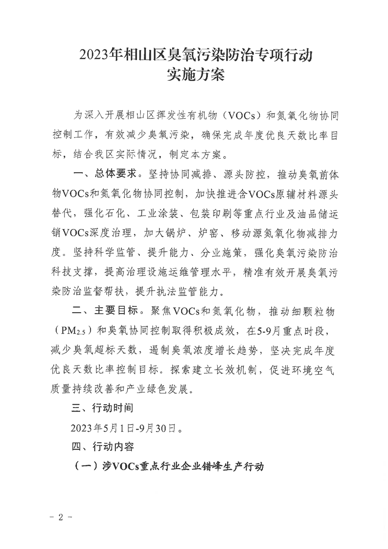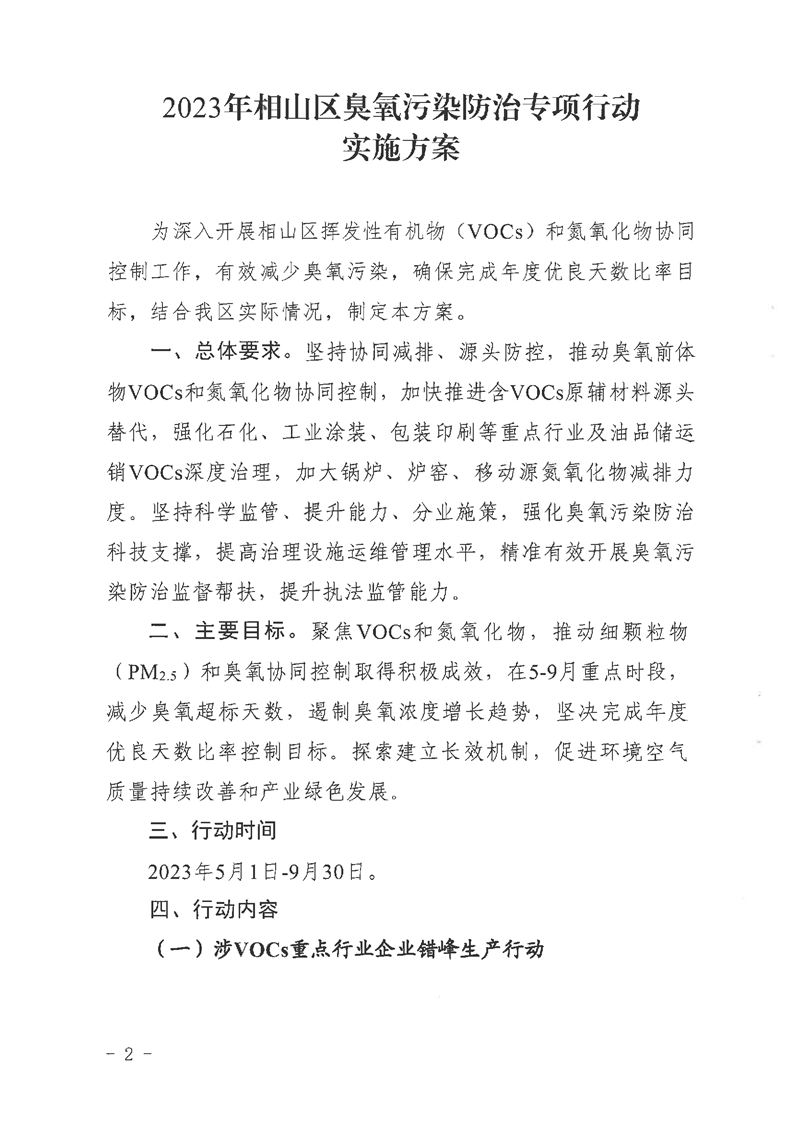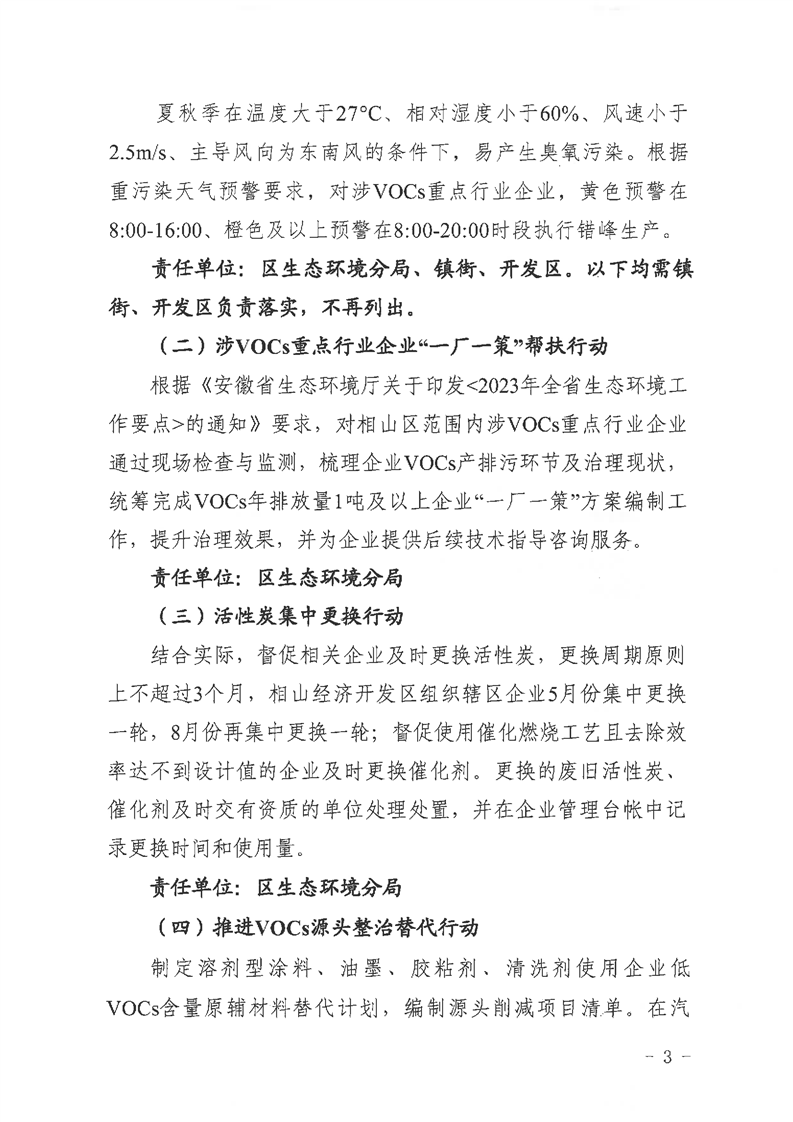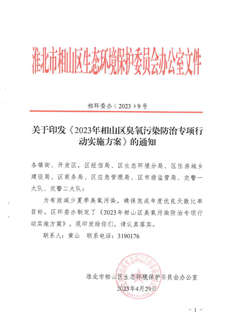 关于印发《2023年相山区臭氧污染防治专项行动实施方案》的通知